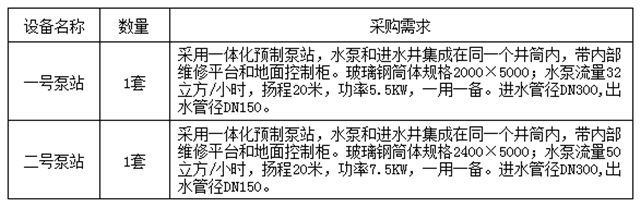 4.采购内容:本项目一体化污水提升设备采购、安装、调试及售后服务等。