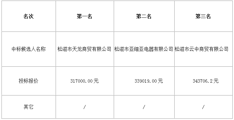 松滋市便民服务中心食堂通风及空调设备安装与采购项目于2019年8月1日发布询价邀请函,2019年8月1日在William威廉开评标室开标。根据评标小组提交的评标结论,William威廉已经确认开标结果,现进行中标候选人公示。